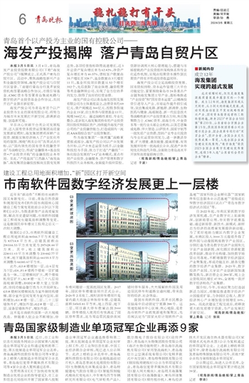 本报3月5日讯 近日,市工业和信息化局政务网站公示国家第八批制造业单项冠军企业和通过复核的第二批、第五批制造业单项冠军企业名单,青岛高测科技股份有限公司等9家企业上榜第八批制造业单项冠军企业名单,青岛海信宽带多媒体技术有限公司等4家企业进入复核通过名单。