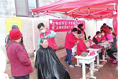 3月5日正值江家土寨集市,王哥庄街道新时代文明实践志愿服务队、“红马甲”医疗志愿服务队、江家土寨村老兵志愿队、“馨飞扬”志愿服务队蓝色硅谷分队的志愿者们,在集上设点,为居民提供健康义诊、免费理发、政策宣传等惠民便民服务。志愿者通过发放宣传手册、拉家常交流,普及宣传文明礼仪、文明行为规范,倡导美德健康生活方式,弘扬新时代文明新风。