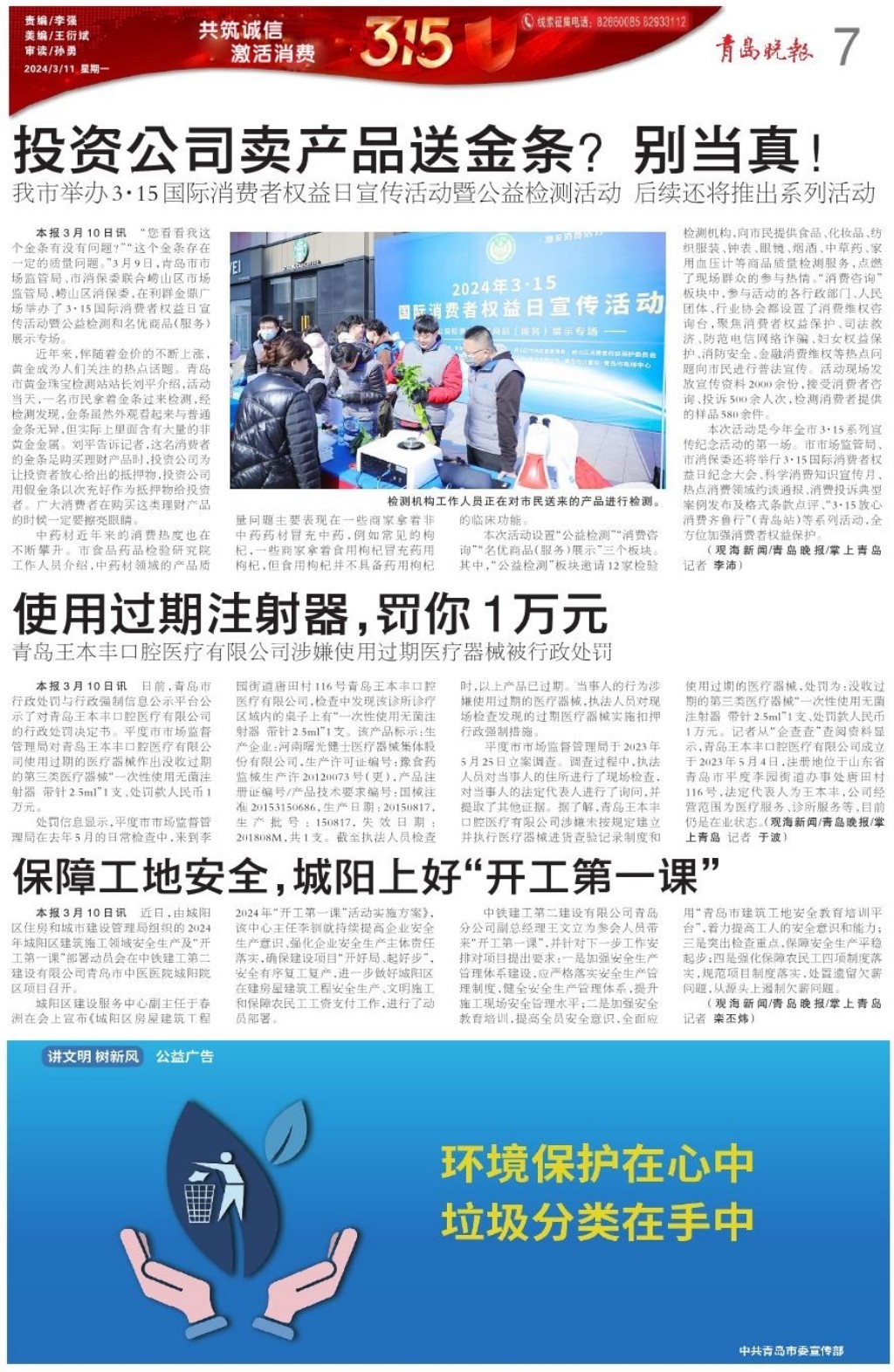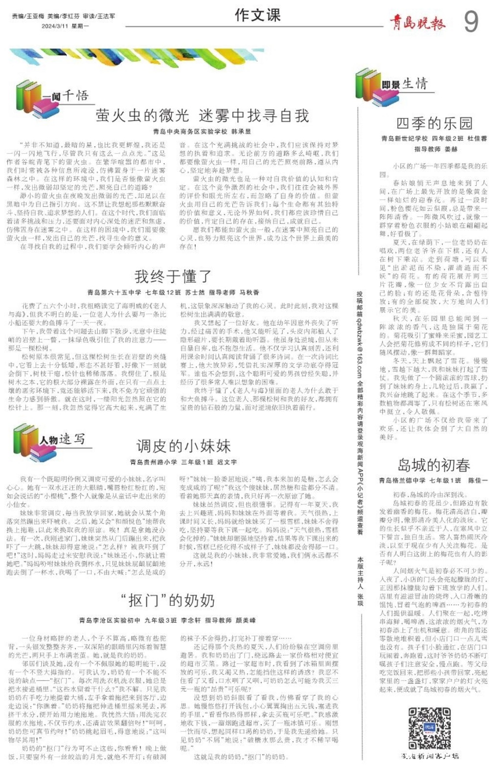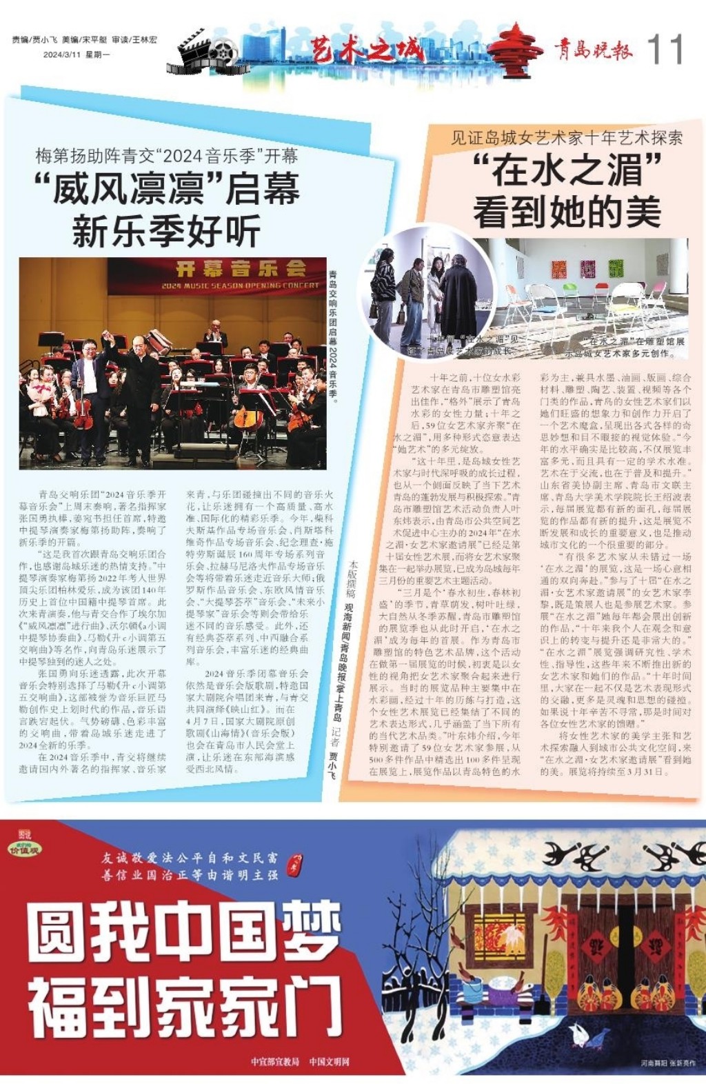 A01 头版 A02 筑梦现代化 共绘新图景 A03 活力海洋之都 精彩宜人之城 A04 人物故事 A05 稳扎稳打有干头 A06 核心价值观·感动每一天 A07 共筑诚信 激活消费 A08 城事 A09 作文课 A10 影剧院 A11 艺术之城 A12 博览