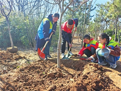 本报3月11日讯 12日是一年一度的植树节,连日来,岛城各界积极开展植树活动,为社区添美景给城市添绿意。