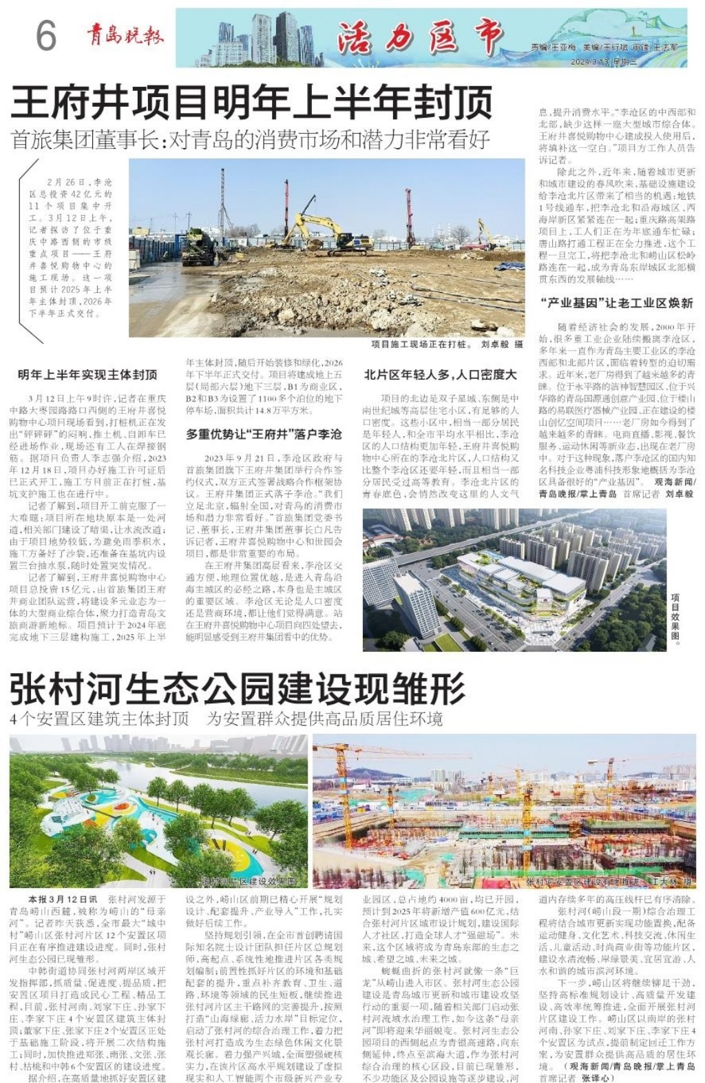 2月26日,李沧区总投资42亿元的11个项目集中开工。3月12日上午,记者探访了位于重庆中路西侧的市级重点项目——王府井喜悦购物中心的施工现场。这一项目预计2025年上半年主体封顶,2026年下半年正式交付。