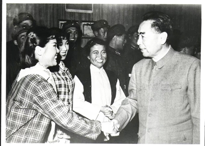 1964年4月,周总理观看独幕话剧《柜台》后接见了剧组演职人员。