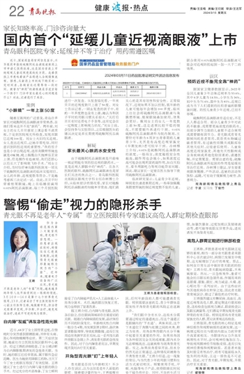 作为全球范围内第二大致盲疾病,青光眼不容忽视。一些患者出现症状时,病情往往已进展至晚期,这使得青光眼被形象地称为视力的“小偷”。近年来,随着电子设备的广泛应用,青光眼不再是老年人的“专属”问题,越来越多的年轻人也开始受到这一眼病的侵扰。3月10日—16日是第十七个世界青光眼周,13日,记者采访了市立医院眼科中心副主任医师王琇,她提醒市民,防治青光眼要早发现、早诊断、早治疗,避免延误治疗,造成不可逆的视力损伤。