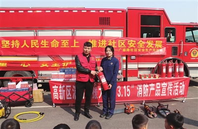 本报3月18日讯 3月15日,高新区消防救援大队联合广盛路社区、高新嘉园幼儿园,以消费者权益日为契机,开展消防产品打假宣传活动,各小区物业、居民、幼儿园师生等80多人参加。
