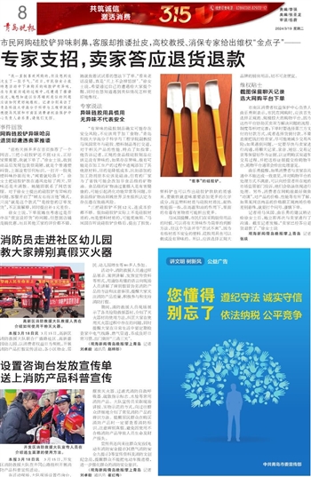 在活动现场,大队现场设置咨询台,摆放灭火器、过滤式消防自救呼吸器、疏散指示标志、水枪等常用消防产品。大队宣传员采取现场讲授、实物示范的方式,向过往群众详细地介绍了常见消防产品的辨识方法。提醒居民群众在购买消防产品时一定要查看消防标识,注意辨别真假,避免因使用不合格消防产品导致人员生命及财产损失。