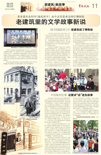 “利用虚拟与现实技术助力博物馆数字化升级,我们在2022年拟真重塑了老舍先生在黄县路故居生活和创作的场景,在馆内做了沉浸式展示。”王咏说,不断加入鲜活的元素,让老建筑里的博物馆人气不断攀升。2023年国庆假期,青岛首部街区实景沉浸式话剧——《寻找老舍先生》在黄县路12号上演,剧中以山东大学的学生寻找舒庆春(老舍原名)的足迹为引线,将老舍在青岛创作的四部作品《断魂枪》《月牙儿》《骆驼祥子》《我这一辈子》的片段串联在一起。“最能代表博物馆特点的文化符号、历史符号、名人符号、建筑符号都融入到这一台‘戏中戏’里了。”王咏总结,这台戏通过骆驼祥子博物馆独有的故事“增值增识增人”。