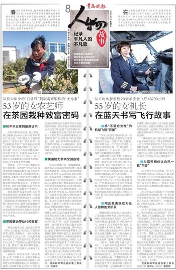 范玉芳说,自己着迷于飞行的魅力,即使是同样的航路,每一次飞行条件也会有差异,每一次飞行都充满惊喜,“在这个三维空间内,一切都是变量,只有我是定量,人机合一,天空之大尽情遨游。”