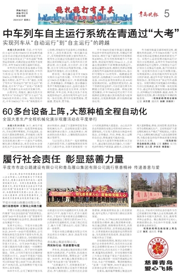 作为城市轨道交通领域原创性、颠覆性科技创新,中车TACS的推广应用将成为推动运营模式革新的新质生产力。实现中心运营管理功能向运行计划自主管理演进,运用中车TACS的地铁线路在运行过程中,可根据全天运行计划自主决策运行进路,基于时刻表实现一定范围内的自主运行调整功能。实现地面核心系统功能向列车安全自主防护演进,通过车车间“资源竞争,控制权独占,使用权共享”保证列车进路安全。实现车辆信号深度融合向车辆运行自主控制演进,基于车辆一体化控制平台,通过多系统智能控制设备深度融合,对车辆运行实现精准、敏捷、高效、节能的优化控制,最大程度提升车辆的性能表现。 (观海新闻/青报全媒体记者 刘兰星 通讯员 赵鹏 刘晓京)