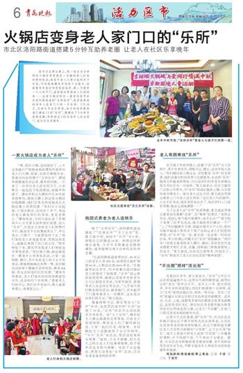 在市北区商丘路上,有一家名为吉祥顺的火锅店常常提前一天接到老人打来的预约电话;电话中老人只预订包间并不吃饭,可老板娘谭凤华仍然十分高兴,安排服务员在打烊前收拾包间,第二天提前一个小时开门,备好茶水等待老人们的到来……这家火锅店的另一重身份是市北区洛阳路街道的“吉祥乐所”,是居家养老的老年人在家门口的一方乐园。3月26日,记者从市北区获悉,如今的洛阳路街道已建起15家“乐所”,搭建起了5分钟互助养老圈,吸纳超过140名老年人走出家门,在社区乐享晚年。
