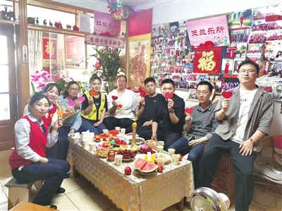 在玉波工作室的墙上,挂着17名“乐所”义工的照片,其中有老党员、网格书记、楼长,还有年轻人加入。“我们辖区的小微企业、学校都是‘乐所’的支持者,他们会拿出时间来参与志愿服务,也会给‘乐所’提供力所能及的帮助,可以说我们的养老互助模式是不用社区花一分钱的。”夏玉波表示,社区力量的广泛加入与参与,为“乐所”的成长提供土壤,从而更好地反哺老人。每当老人过生日时,夏玉波会带领志愿者上门为老人送长寿面。“这位老人叫孙丽华,儿女不在身边,现在老伴也去世了,每次我们上门送长寿面,她总是泪流满面……”