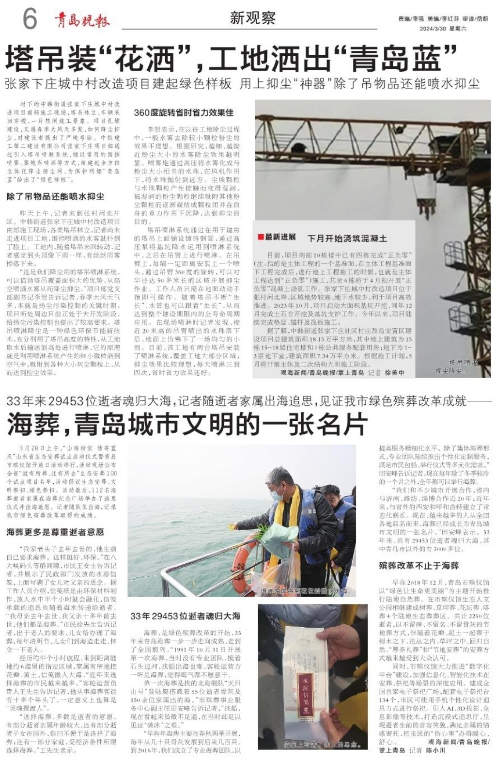 塔吊装“花洒”,工地洒出“青岛蓝”