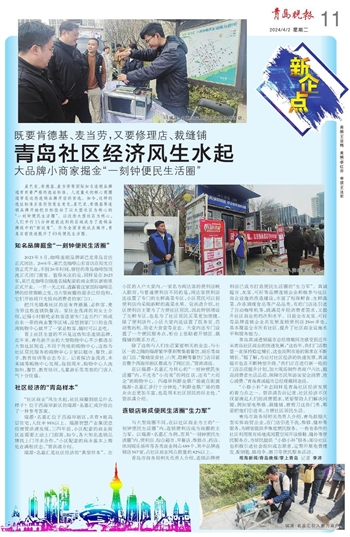 青岛市商务局相关负责人介绍,青岛鼓励大型实体商贸企业,在门店引进干洗、维修、缝补等服务,为顾客提供多维度便民服务。一些有条件的社区利用现有场地或闲置空间开设修鞋、缝补等便民服务点,为居民提供 “小修小补”服务;部分社区也积极引进社会组织或志愿者,定期开展免费理发、配钥匙、修雨伞、磨刀等便民服务活动。