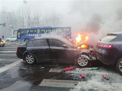 消防救援人员现场询问轿车司机后了解到,当天大雾天气,道路能见度低,轿车司机未能及时发现路口信号灯变动,没有与前车保持安全车距,刹车不及时导致事故。起火后,他尝试用灭火器灭火,但火势蔓延太快,只能拨打119求救。消防救援部门提醒市民,大雾天气须降低车速并保持安全车距,谨慎驾驶。 (观海新闻/青岛晚报/掌上青岛 记者 刘卓毅 通讯员 崔红梅)