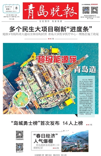 4月7日,“海洋石油122”浮式生产储卸油装置(FPSO)在海油工程青岛场地进行海上倾斜试验及调试(无人机照片)。