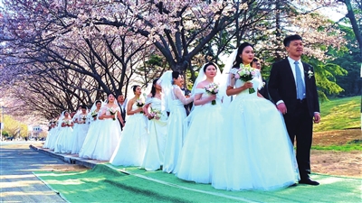 绚烂的樱花树下,伴随着悠扬的音乐,100对新人身着盛装,走过红毯。近日,“爱如海大”中国海洋大学2024校友集体婚礼在崂山校区举行,校友新人以爱为名,重聚山海间,共同欢庆海大建校100周年,同时倡树风清气正、勤俭节约的新风尚。 记者 张琰