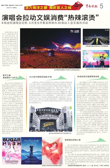记者综合山东省文化和旅游厅官方网站公布的营业性演出准予许可及大麦网、大河票务网等综合票务平台发布的信息,目前已公布信息中,2024年在青岛举办的音乐演绎活动预计将超过30场,其中已完成备案的演唱会已安排至9月。时间上集中于节假日,特别是在“五一”国际劳动节假期期间,将有大量演出扎堆举行。从地点上看,中小型演唱会倾向于选择位于市北区宁海路18号中粮大悦城的Downtown Live,大型演唱会在选择青岛市民健身中心体育馆、青岛国信体育中心等大型场馆举行。从票价来看,中小型演唱会多在600元以下,知名艺人演唱会最高票价可能达到千元以上。演出者方面,头部艺人多为港台或国外歌手,中腰部或新人歌手倾向于与livehouse(小型专场演出)等新型演艺空间合作,采取更为灵活多样的演出方式。