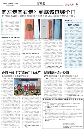 就此事,记者也采访了人大代表和政协委员。市人大代表、李沧区新联会会长、快乐沙爱心帮扶中心负责人林风谦认为,公共场所的厕所如果性别标识不清,容易引发大误会,在设计感和方便中间,他觉得应该选择方便,毕竟公共服务要覆盖到更多人。市政协委员、青岛市委党校管理学教研部副主任李光全则表示,如今厕所的性别标识牌虽然设计感十足,但最好还是不要用太个性化的图案,应尽量使用通俗易懂的图案作为标识,或者在标识牌一角加上“男”“女”。