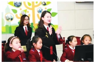 张玉法官(右三)送法进校园。