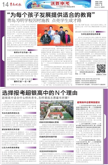从中考的失落,到高考的成长、收获,他们在高中三年完成了人生的华丽蜕变。青岛为明学校高中部多元培养、多元成功,在国内高考中连年攀高,国际高中毕业生全部升入世界名校,形成“多元培养、多元发展、多元成功”的办学特色,取得了“低进高出、高进优出”的突出成果。