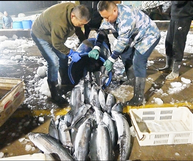 沙子口渔港鲅鱼大量上市