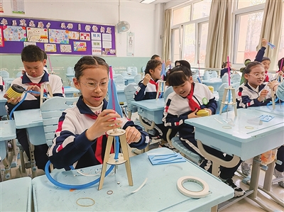 在“收集春天”活动中,学校引导学生通过研究古法造纸收集花草制作成春草纸,创意制作成书签、扇面、记事簿等小工艺品,传承传统文化促进美育。在“充‘植’春天”活动中,学生们创意使用鸡蛋壳作为容器进行多肉植物种植体验,结合“地球日”的学习,加深对自然环境的了解,提升环保意识。在“放飞春天”活动中,学生和家长一起自制风筝,在亲子协作中体验传统艺术。此外,学生们还用笔墨描绘春色,用字词赞美春景,把春的诗情画意透过笔尖在纸上留下印记。