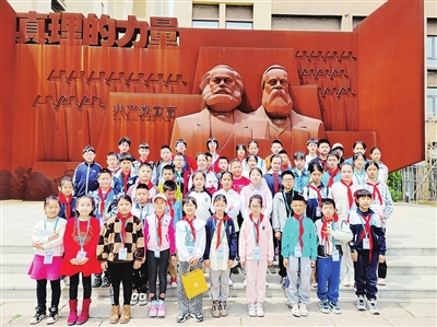 在马克思主义真理馆中,实物、文献等方式呈现了马克思、恩格斯的传奇一生,马克思主义创立和发展的过程,以及马克思主义中国化的光辉历程。讲解员以互动讲解的方式,介绍伟人励志故事,带领小记者们学习红色历史、分享新时代成就。