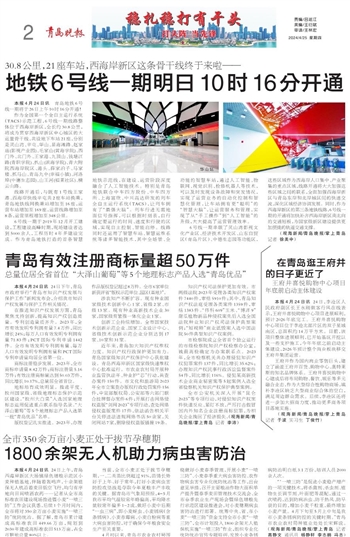 本报4月24日讯 青岛地铁6号线一期将于26日上午10时16分开通!