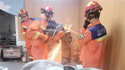 4月24日,城阳区消防救援大队接到求救电话,瑞阳路一包子店内,有人被轧面机夹住手臂,急需救援。春城路消防救援站救援人员立刻赶赴现场施救。救援人员发现,只要将滚轴稍微抬起就可以让伤者抽回手臂,但轧面机结构紧密且质地坚硬,撬开滚轴容易对伤者成二次伤害。救援人员随后用无齿锯切割破拆,最终让女子将被卡住的手臂抽回。据救援人员介绍,事发前女子往机器内送面,未能及时将手抽出,导致险情发生。