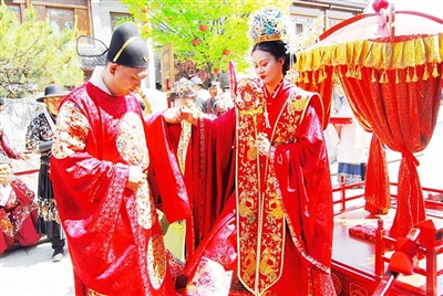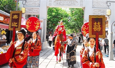 即墨古城的中式集体婚礼仪式。 张涛 摄