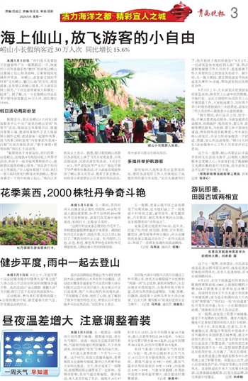 本报5月5日讯 五一假期在一场降雨中悄然落下帷幕。假期前半段,我市天气晴好。前海一线因为受海洋调节影响,气温较内陆地区明显偏低,不少来青游客,纷纷感叹“冻死”在青岛的春天里。