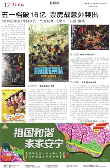 五一假期收官,五一档票房出炉。据猫眼专业版数据,截至5月5日20时20分,2024年五一档新片总票房达到16亿元!超越了2023年同期的15.19亿元。其中《维和防暴队》《末路狂花钱》《九龙城寨之围城》分列票房榜前三位。