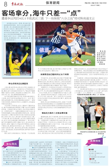 在刚刚过去的五一假期,青岛海牛球迷看球看得很煎熬。海牛大比分输给联赛排名第二的上海海港在球迷的预料之中,但在5日与武汉三镇的比赛中,球队却输得很憋屈。拼尽全力的海牛队,因为一个有争议的点球痛失好局。球队在经历两连败后,排名再次降到倒数第一。目前,中超联赛已进行三分之一,保级大战进入白热化阶段,距离保级区只有一场球的差距,海牛队需要加把劲了。