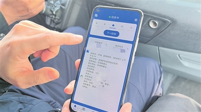 记者注意到,同车的急救中心工作人员手持急救终端,屏幕上规划的路线是劲松三路向北、左转合肥路,再一路向西直达目的地。