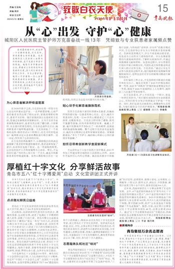 今年是青岛市红十字会建会110周年。110年来,青岛市红十字会大力弘扬“人道、博爱、奉献”的红十字精神,广泛汇聚社会公益力量,充分激发广大红十字志愿者的活力,1万余名红十字志愿者每年开展人道服务活动300余场次,服务群众20万余人次,救助、救护、救援、无偿献血、造血干细胞捐献、遗体器官角膜捐献等各项工作均走在全国前列。“微尘”“红十字搜救”“九月天使”等红十字特色志愿服务公益品牌享誉全国,充分彰显了青岛这座爱心之城的文明底色。