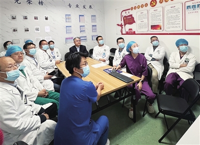 市立医院东院急诊科迅速汇报医务科,启动全院多学科会诊。急诊科、胸外科、泌尿外科、脊柱外科、结直肠外科、肝胆胰外科、麻醉科、影像科等十多名科室主任、专家齐聚,副院长袁荣涛紧急调度抢救,先后展开两次全院会诊讨论。完善相关检查发现,杨先生的遭遇可以说是不幸中的万幸,钢钉虽然紧贴杨先生脊椎,但并未刺入椎体内,同时也避开了肝门、肾蒂等处的较大血管,虽然肾脏破裂出血、肝脏有挫裂伤,但并没有不可控的活动性出血。然而钢钉紧贴腰椎,附近有重要神经纤维,手术取出过程需要格外小心谨慎,一旦造成神经损伤,将影响病人下肢功能。