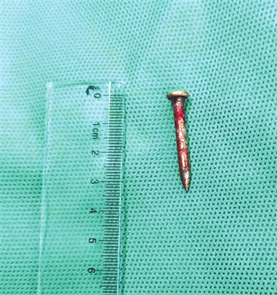 市立团队从杨先生体内取出3厘米长的钢钉。