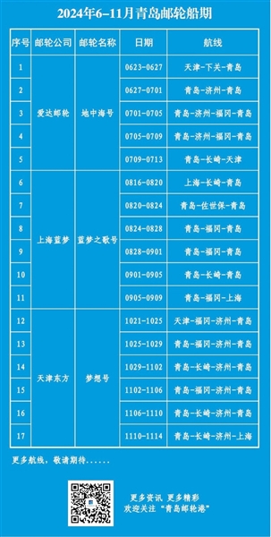 为了满足广大游客日益增长的邮轮旅游需求,青岛国际邮轮母港也宣布了另一项利好消息:在2024年6月至11月期间,新增17个精彩纷呈的邮轮航次。这些新增的航次涵盖多种主题和目的地,为游客提供更为丰富多样的海上旅行选择。无论是寻求文化体验、自然探险还是休闲度假,游客都能在这些新航次中找到满意的选择。