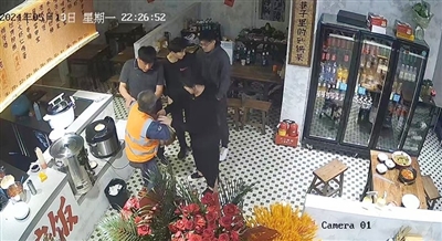 陈相民牵着老人的手把他带回店里。(监控截图)