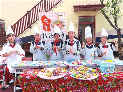 青岛德县路小学教育集团学生展示学到的劳动技能。 张琰 摄