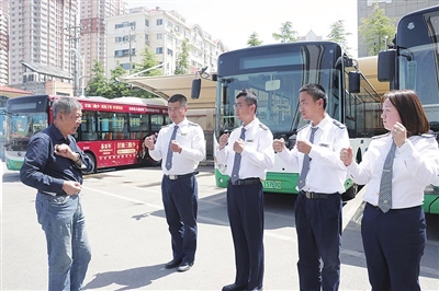 为给听力障碍人士提供更好的服务,青岛手语工作室的王建民对公交驾驶员们进行现场教学,讲授日常行车过程中可能会用到的手语,在他的指导下,“请”“您好”“谢谢”等服务用语在驾驶员们的手中变成了生动形象的肢体语言。在驾驶员臧德超看来,学习手语能丰富他的车厢服务内容,可以满足不同群体的乘车需求。