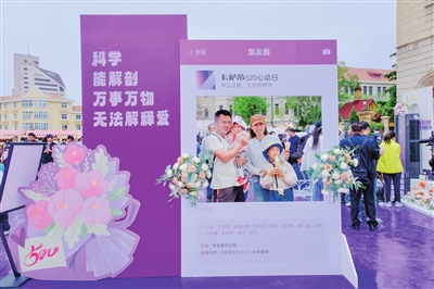 中心舞台上,一首首情歌联唱,唱响在有情人的耳边,动人心弦;广场中央,卡萨帝心动花园里,甜蜜饮食区与游戏区人气满满,青岛市福彩中心的浪漫打卡墙迎来络绎不绝的打卡人;还有岛城多家知名品牌和企业在广场为爱出摊,为有情人现场服务并提供抽奖奖品。更有青岛晚报全媒体“爱摄青岛”团队专业摄影师,为参与活动的有情人提供免费拍照服务,留下“520定制版”爱情影像。
