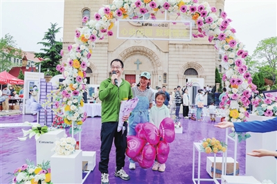 青岛市福彩中心也在天主教堂前打造了一处浪漫打卡墙,并现场赠送福彩大礼包。青岛晚报全媒体“爱摄青岛”团队专业摄影师,在打卡墙前为参与活动的有情人们提供了免费拍照服务,留下“520定制版”爱情回忆。同时,青岛福彩联合市南区婚姻登记处开展的“福彩相伴 幸福一生”活动也正式启动,自5月20日起,凡是在市南区婚姻登记处办理结婚登记的新人,均可获赠面值10元的即开型福利彩票一张,愿福彩的祝福陪伴新人们,为他们的婚姻之旅增添更多的幸福与喜悦。