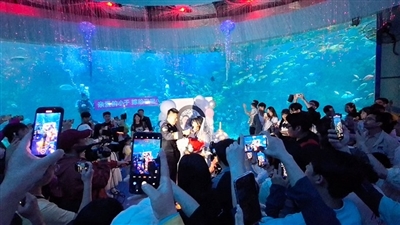 本报5月19日讯 5月19日下午,一场别出心裁的水下求婚仪式在青岛极地海洋公园唯美呈现,通过网络直播的方式,向全国观众实时分享了这份浪漫与感动。小伙潜入6米深的水池中,在白鲸的见证和潜水员的协助下,成功向女友求婚。现场观众与线上网友齐声欢呼,共同目睹了这一温馨且难忘的幸福瞬间。