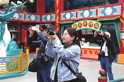 当日下午,稍作休息的摄影师们再次出发,来到青岛明月·山海间景区。这里以精致国潮文化为主线,摄影师们穿梭于古色古香的建筑与现代艺术装置之间,用镜头记录下每一个充满创意的瞬间。此次摄影采风活动,不仅给大家带来了一场视觉盛宴,更是一次文化与艺术的交流碰撞。