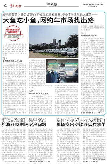 “目前,网约车平台市场的头部聚集效应非常明显,呈现出‘大鱼吃小鱼’的行业新生态。”这名知情人士表示,只有掌握了流量和大量日活用户的大平台,才能实现发展。日常在和不少小平台公司负责人沟通中发现,因为市场竞争激烈,有的小平台公司已经到了“生死最后关头”,有的甚至开始了低价竞争。 观海新闻/青岛晚报/掌上青岛 记者 徐美中