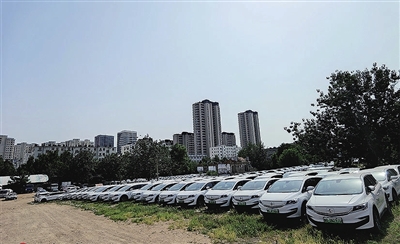 根据桑先生的指引,记者来到位于李沧沧口附近的这处停车场看见,满是杂草的空地里,停放着上百辆车身喷涂有该公司Logo的网约车。附近居民告诉记者,虽然具体多久记不清,但这些车辆“躺”在停车场已有段时间了。看着它们停在那里每天被风吹日晒,受访者表示心里感觉挺可惜。桑先生所在公司没有出租出去的车辆,也找了个专门停车场停放。“没有办法,租不出去只能先找地方停着。”对于一些即将到期的燃油网约车,桑先生则通过公开招拍挂的形式统一出售处置。