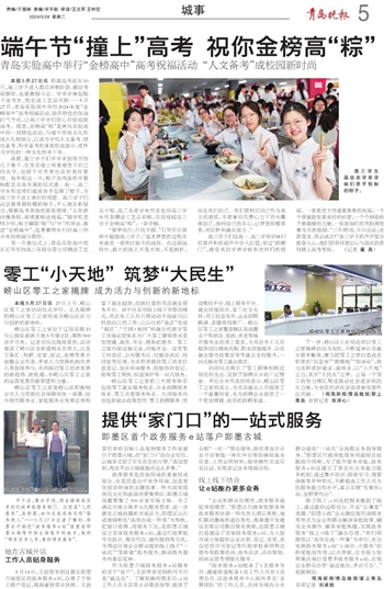本报5月27日讯 距离高考还有10天,高三学子进入最后冲刺阶段,做好考前静悟,也要激励斗志。学弟学妹包粽子送考生、校长送工艺品大粽……5月27日,青岛实验高中举行2024年度“金榜高中”高考祝福活动,独具特色的加油打气方式,让高三学子们信心百倍迎接高考。据悉,金榜高“粽”是青岛实验高中的一项特色活动,与端午传统文化和成人礼相结合,已成为学校人文备考、绿色备考、科学备考的重要组成部分,更作为学校的一种文化传承下来。