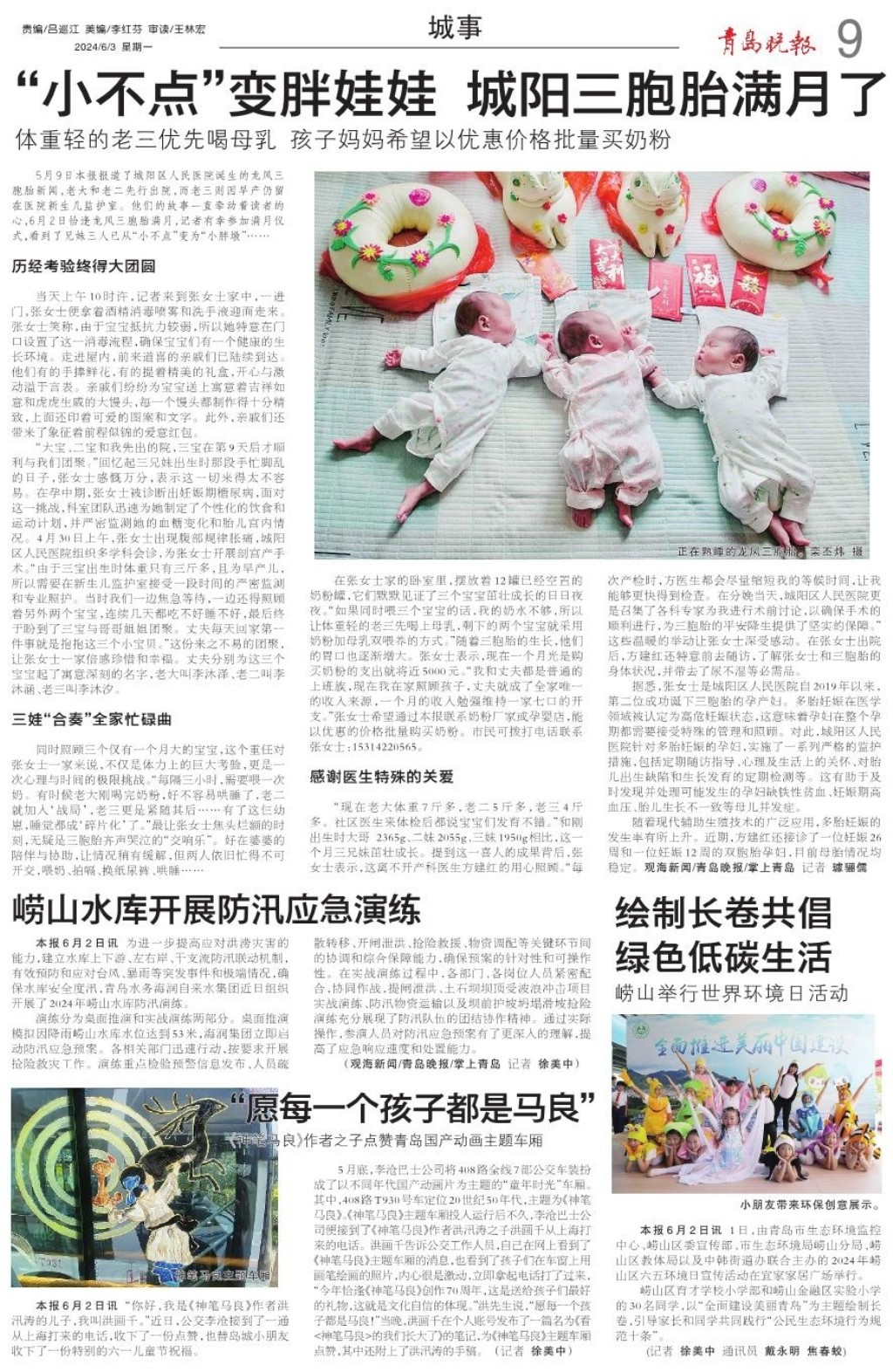 “小不点”变胖娃娃 城阳三胞胎满月了