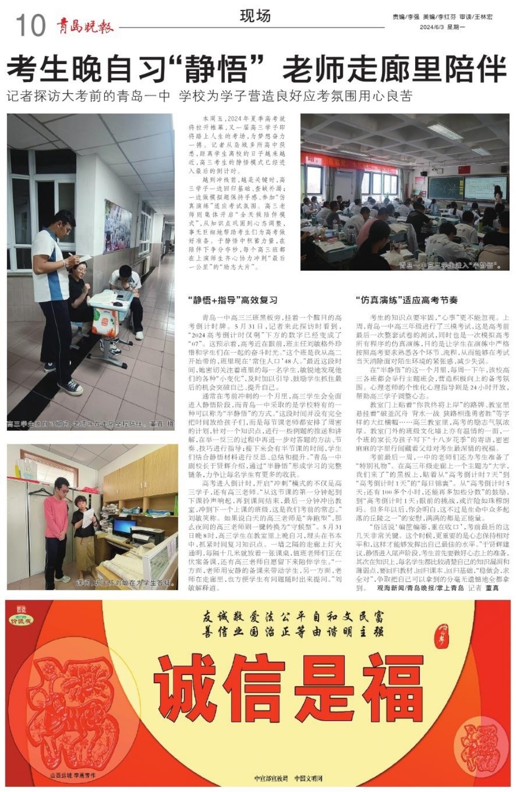 考生晚自习“静悟” 老师走廊里陪伴