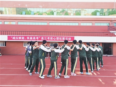 每到课间,所有任课教师都到教室前进行知识答疑或心理调适交流,对于无法及时解答的问题,同学们还可以写在答疑卡上,老师解答后再发给学生。“典型问题粘贴到文化墙上供同学们相互学习。同时倡导同学们心理压力过大时,相互交流、相互提问、相互倾诉,释放压力,调适情绪,没有疑问的同学则到操场进行安全的体育锻炼。”高三级部主任孙丽梅介绍,备考期间心理老师随时在校,定期开展心理拓展活动让考生们放松身心。